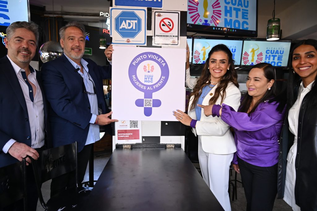 ALCALDÍA CUAUHTÉMOC, Ciudad de México, a 9 de abril de 2025.- La alcaldesa de Cuauhtémoc, Alessandra Rojo de la Vega, encabezó la instalación de cinco nuevos Puntos Violeta en restaurantes de la colonia Hipódromo Condesa, como parte de la estrategia integral para prevenir, atender y combatir la violencia de género.