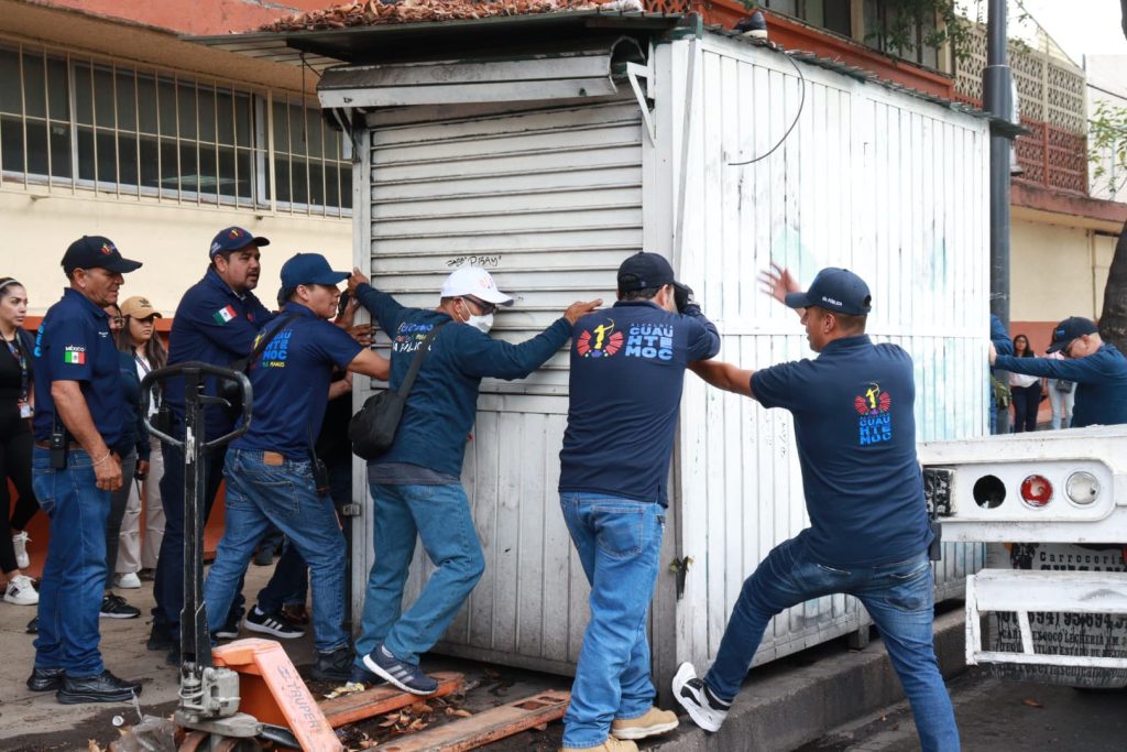 En la colonia Cuauhtémoc, personal de la Dirección de Mercados y Vía Pública, con apoyo de la Policía Auxiliar adscrita a la Alcaldía Cuauhtémoc, retiró un puesto metálico ubicado en Río Nazas esquina con Río Rhin. La acción fue encabezada por Ale Rojo de la Vega, quien conversó directamente con el propietario y lo invitó a una mesa de trabajo para analizar alternativas conforme a la normatividad vigente.