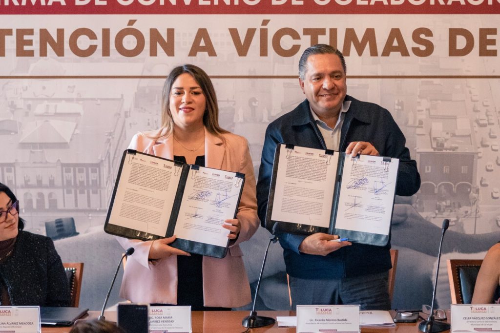 TOLUCA, Edomex. – El Gobierno del Estado de México y el Ayuntamiento de Toluca firmaron un convenio de colaboración para reforzar los mecanismos de atención integral a víctimas de violencia, con énfasis en la restitución de derechos, el acompañamiento jurídico, psicológico y social, y la prevención de la revictimización.